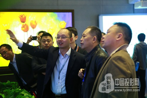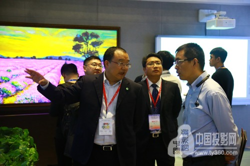 蒲毅董事長向參觀者介紹國畫激光投影優(yōu)勢