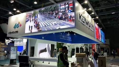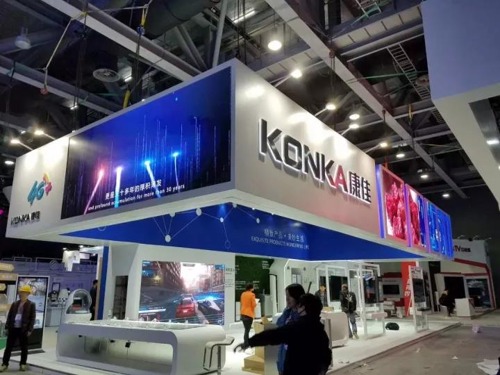 康佳展區本次科技感十足,不僅因為有屏體厚度僅3.66mm的超薄OLED壁紙電視、R1變頻電視、A1人工智能電視等精致高科技產品,更是因為本次康佳展館大面積使用了康佳商顯小間距顯示屏。變幻多樣、絢麗多彩的宣傳視頻、海報,以康佳商顯高清高品質小間距LED屏為載體,高端大氣、精致現代,科技氣息展現地淋漓盡致!
