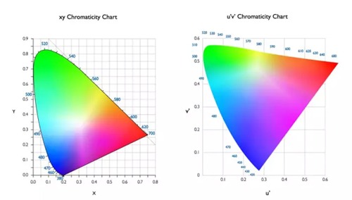圖3: CIE 1931 xy色度圖 圖4: CIE 1976 uv色度圖
