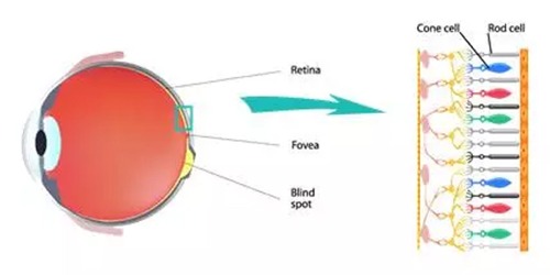 在人眼視網(wǎng)膜中,有兩種類型的細(xì)胞負(fù)責(zé)對(duì)于色彩的感知:一種是桿體細(xì)胞(rod),一種是椎體細(xì)胞(cone)。
