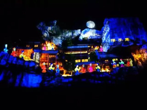 夜晚,月搖星稀,川洞田園也迎來了首次裸眼3D激光情景劇——咸豐大型山體投影秀“悅響川洞,飛越田園”!創意的光影在山體、樹木上縱情揮灑。蘊含著濃厚的民族色彩和古城文化。