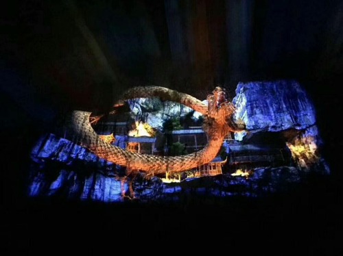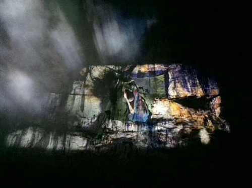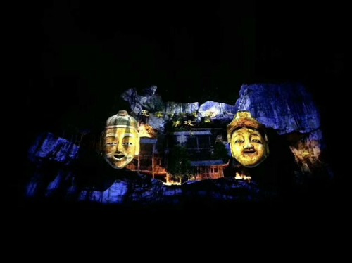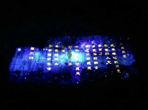 畫面中,我們可以看到凹凸不平的峭壁上,投影并沒有發生扭曲,反而十分生動。接下來,讓我們欣賞“悅響川洞,飛越田園”更多投影精彩!