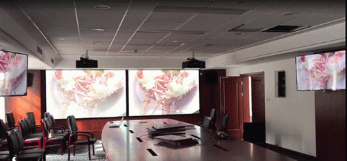 近日,AVANZA激光工程投影機(jī)入駐上海楊浦區(qū)人民政府大型會(huì)議室。會(huì)議室主屏幕使用2臺(tái)AVANZA激光工程投影機(jī)投射兩個(gè)大屏幕,兩側(cè)使用2臺(tái)LED小屏幕,四個(gè)畫面同步播放。不論坐在會(huì)議室的任何一個(gè)角度都能清晰觀看播放內(nèi)容。