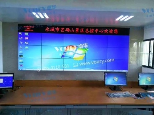 在河南省永城市芒碭山景區總控中心同樣選擇了Voury卓華液晶拼接屏,落成并投入使用,選用LCD拼接屏顯示尺寸為46寸,3×5 ,共計15塊液晶拼接屏構成,良好的顯示效果得到景區領導與專家的一致好評。