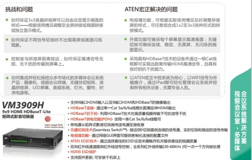 手的圖形化用戶界面(Web GUI),可支持不同的電視墻樣式。另外VM3909H也采用HDBaseT技術,可通過Cat線纜遠距離傳輸高清信號、控制信號、甚至電源等。