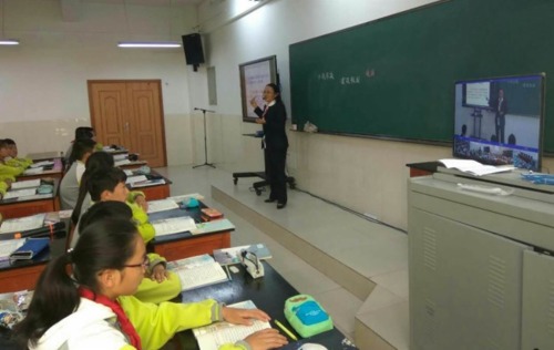 第一天,教育局工作人員、優秀教師等觀看了龍泉、江口、銅廠、方屯、六街五所小學的互動教學。在龍泉中心小學教室右邊桌上放置的的屏幕上能清晰地呈現出另外四個學校班級的情況,老師通過屏幕就能及時掌握所有學生的上課情況。同樣,老師上課時屏幕上呈現的文章內容以及音視頻也能通過紫旭錄播系統實時傳輸到其余學校,學生就如同坐在同一教室內上課一般。