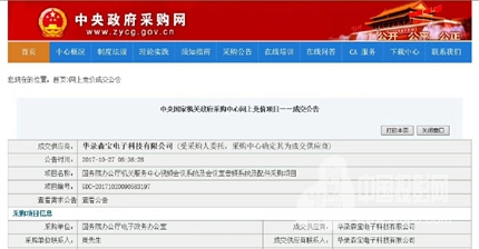 2017年10月27日,華錄激光投影電視中標(biāo)“國務(wù)院辦公廳機關(guān)服務(wù)中心視頻會議系統(tǒng)及會議室音頻系統(tǒng)及配件”采購項目,公示于中央政府采購網(wǎng)(http://www.zycg.gov.cn/),并于11月9日成功實施安裝落地。