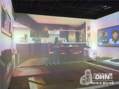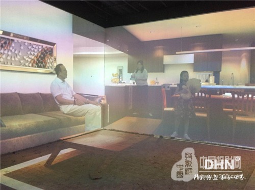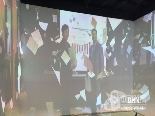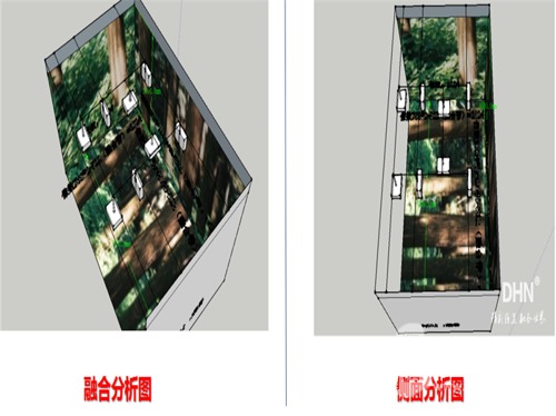 以8通道沉浸式板塊為例,左右墻分別長4.4m ,高3.6m,中墻長7m高3.6m。根據客戶要求,墻面與地面皆用投影來實現,播放視頻時,墻地必須同時進行,實現墻地聯動效果。根據這一要求,我司給出“選用8臺標清投影機,分別左右墻一臺,中間墻兩臺,地面配置四臺投影機,搭配DHN系列邊緣融合器”,實現墻、地畫面無壓縮融合,打造沉浸環境,營造全方位、立體的身臨其境感。