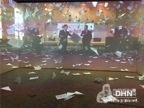 從方案設計到方案實施,共耗時6天。整個現場搭配7000流明工程投影機,選用DHN—DX432、DHN—DW705邊緣融合器,實現多臺融合大畫面。