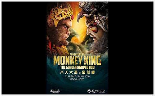 11月11日,經(jīng)過再次復(fù)排改版的多媒體雜技魔幻劇《金箍棒》重磅歸來,更名為《齊天大圣之金箍棒》(英文名:Adventures of the Monkey King and the Golden Hooped Rod),遠赴馬來西亞,從今天在云頂劇場開啟駐場演出,時間持續(xù)至2018年1月1日。