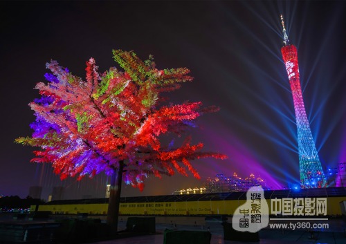本屆廣州國際燈光節,Vivitek(麗訊)參與展示的最新作品融入激光光源、3D投影等最新科技元素,共計20臺Vivitek(麗訊)工程投影機將在18天主展期內持續穩定工作,協助創作人員打造炫麗、奇幻的光影魅力空間。其中,Vivitek(麗訊)在主會場花城匯打造4號作品《光之樹》,由法國多學科藝術設計團隊Danny Rose設計,廣場內高大的樹體十分醒目,投影部分高9米,寬15米,采用4臺Vivitek(麗訊)最新18,000流明激光工程投影機DU9800Z打造而成。在鋼筋與混凝土結合的現代城市中,樹代表著生命的起源,作品為夜晚寂靜的城市增添一份暖人心扉的光芒生機,光之樹將光與樹完美結合,表現出一種勃發的生命力,以不同的形態向觀眾呈現出一年四季不同的生命形態:春之靈動,夏之熱情,秋之靜美,冬之蒼勁。同時也喻示著人類前進的步伐永不停息。