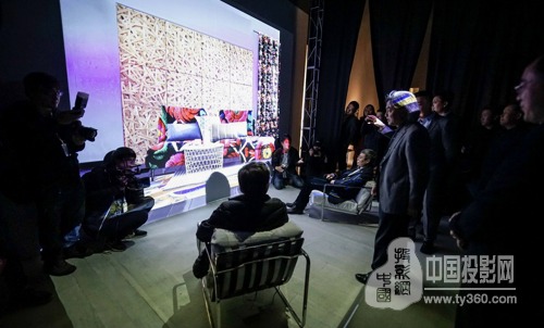 《對話》——旨在交流,即讓觀眾能和非遺文化進行“交流”。激光顯示和交互式沉浸體驗直接將非遺文化搬運至現代時空。這個展項的基礎設置非常簡單,一塊空地、一面墻、兩把椅子,再加兩臺激光投影機。實際上就是模擬一個現代生活空間的場景,相當于一個干凈一點的“毛胚房”,而視美樂7500LM激光工程投影機恰如一個魔術師,因為有了它才讓這一切變得生動和鮮活起來。