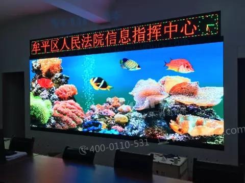 山東省煙臺(tái)市牟平區(qū)人民法院執(zhí)行指揮中心大屏幕落成,采用Voury卓華微間距黑晶王P1.6系列顯示屏,長(zhǎng)度4.4米,顯示高度1.8米,顯示面積為7.92㎡。