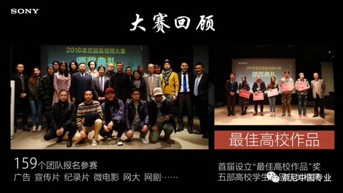 演講最后,鄭老師還邀請學生們提交自己創作的攝像作品,參與到索尼超級視頻大賽 “與精英同行” 活動中來。在“與精英同行”活動中,索尼公司還專門設置了針對高校的學生創作獎項,以鼓勵學生們的影視創作熱情。