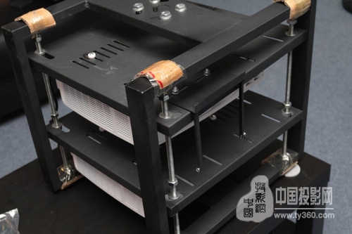 安裝之前要把兩臺(tái)投影機(jī)的支撐腳都全部下掉,要不然會(huì)放不平,固定不牢靠,等于說好東西全拆下來當(dāng)廢品了。