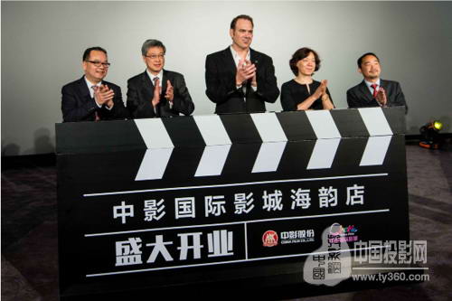 揭幕儀式合影從左至右:珠海城建集團公司董事長張凡先生、中影影院投資有限公司執(zhí)行董事林民杰、THX全球技術總監(jiān)Steve Martz 、中國電影科學技術研究所所長張偉女士以及珠海海韻資產(chǎn)管理公司總經(jīng)理劉建軍先生