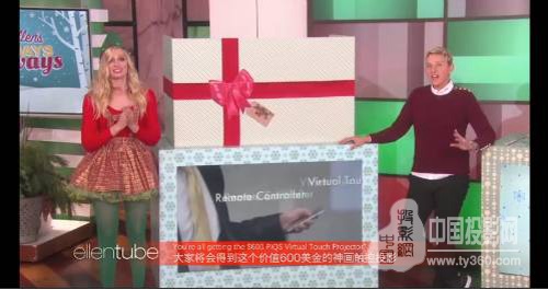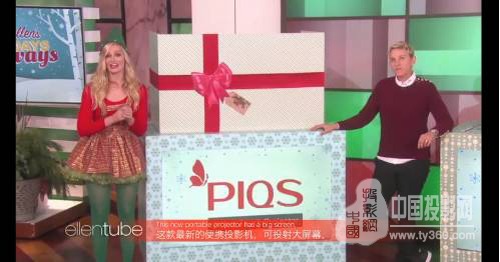 Ellen: “ You’re all getting the $600 PIQS Virtual Touch Projector”(大家將會(huì)得到這個(gè)價(jià)值600美金的PIQS神畫智能觸控投影。)