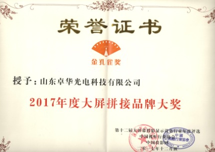 Voury卓華憑借強大的綜合實力斬獲多項大獎,引領大屏顯示行業向整體解決方案方向快速前進。本次評選致力于展示優質大屏顯示供應商整體形象,詮釋行業精神,主要以企業的品牌實力、產品、服務作為主要參評依據,經過公開投票、專家評審的環節從上千家參與評選的企業中,評選出Voury卓華為“2017年度大屏拼接品牌”及“2017年度小間距LED”獎項獲得者。