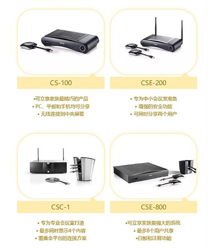 無論使用PC、平板還是移動設備,用戶只需輕點按鈕,會議內容便可瞬間通過大屏幕共享給每一位與會者。可立享的4款不同型號產品分別適用于小型、中型、專業及董事會級別會議室的可立享產品,均能以最簡單、最直觀的方式呈現會議內容。