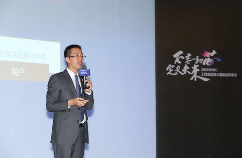 NEC(中國)顯示產(chǎn)品解決方案銷售支援本部副總經(jīng)理崔永新闡述新品的智能化和可視性特征