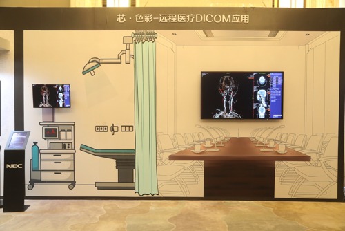 遠(yuǎn)程醫(yī)療DICOM應(yīng)用展項(xiàng) NEC獨(dú)家SVE色彩引擎技術(shù)確保了遠(yuǎn)程專家會診室和手術(shù)室顯示器畫面細(xì)節(jié)完全一致