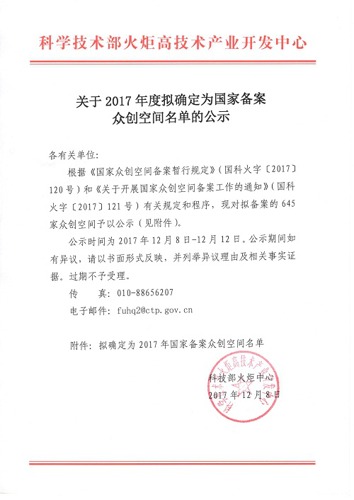 近日,科技部下達了《關于2017年度擬確定為國家備案眾創空間名單的公示》,華平旗下視頻專業化眾創空間“Hopingspace華平眾創空間”(以下簡稱Hopingspace)通過公示,成功入選國家級眾創空間。