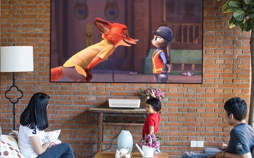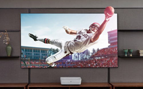 當主流電視還在55吋大小徘徊,明基激光超投電視已經做到百吋大屏,同時還擁有真彩全高清家庭影院效果。一般我們看電視,小屏幕意味著需要湊近看,湊近以后會擋住其他觀看者視線,遠離又會有一種“瞭望兵”的走馬觀花感。很顯然,畫面大小會影響適合觀看的距離及人數,而大屏幕更具選擇空間。試想如果是真人大小的球星在風騷控場,抑或健身私教當場教導動作,效果遠勝小屏幕。