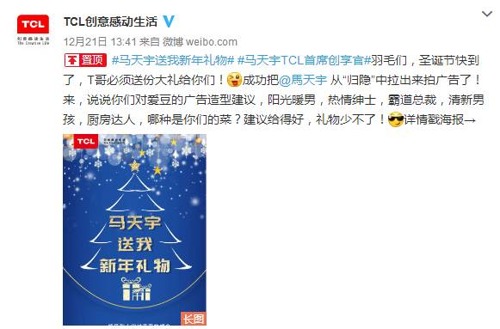感受到大家對TCL品牌創享官馬天宇的思念