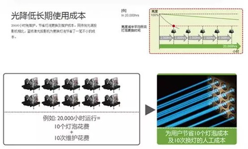 (5)長期成本較低:乍看之下,燈泡機是便宜的選擇,但算上使用壽命成本,激光還是相對劃算。