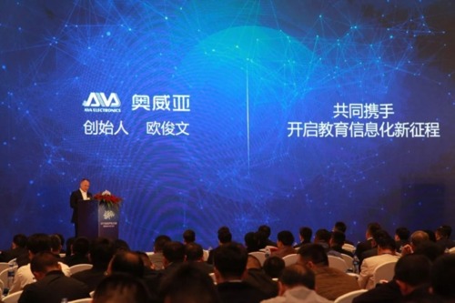 緊接著,奧威亞的創始人歐俊文先生以“共同攜手,開啟教育信息化新征程”為主題,為大家介紹了奧威亞最近接連的喜訊。第一,奧威亞即將成為國務院國資委控股上市公司之全資子公司,邁進公司發展新時代,開啟新征程。