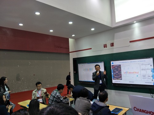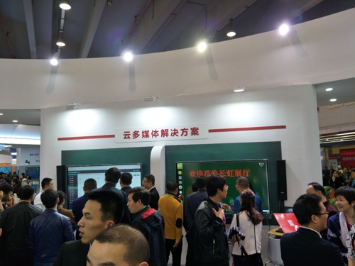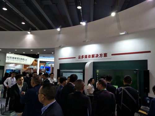 展會現場,長虹教育多媒體教室解決方案、碼課解決方案、幼教解決方案、大數據平臺、移動授課解決方案的區域也吸引了不少參觀者體驗和了解。