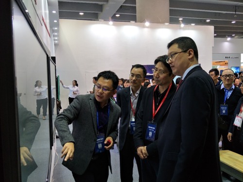 長虹教育展位不僅參觀者眾多,還吸引了四川省教育廳朱世宏廳長一行、教育部基礎教育司裝備與信息化處處長張權、部分省市自治區的教育裝備領導蒞臨長虹教育展位參觀指導,并得到了領導們的肯定和贊賞。對長虹教育提出,長虹教育作為中國教育裝備行業協會副會長單位,要扛起教育裝備的大旗,加大對教育裝備產品的創新和研發,創新商業模式,按照高起點、高標準提升教育裝備的質量,帶領裝備企業共同推動中國教育信息化的建設和發展。并對本屆展會長虹教育的展示方案表示了肯定,對長虹教育的研發和創新能力大加贊賞。
