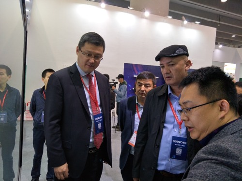(新疆維吾爾自治區教育廳教育裝備處長努爾·買買提聽取長虹教育信息化解決方案