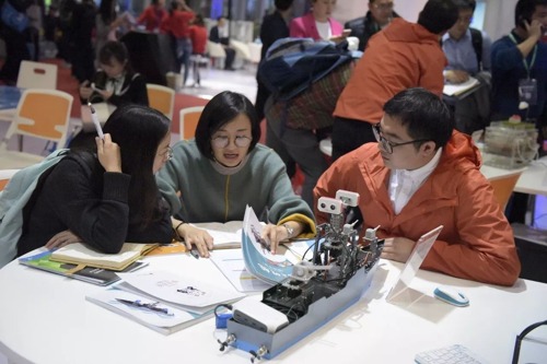 主講區,八爪魚教育為蒞臨領導、嘉賓介紹八爪魚教育的智慧創客空間整體解決方案。從steam課程到創客套件,以及創客教室空間設計,再到數據實證系統和原創教學資源,八爪魚教育能提供一體式的創客教育服務。