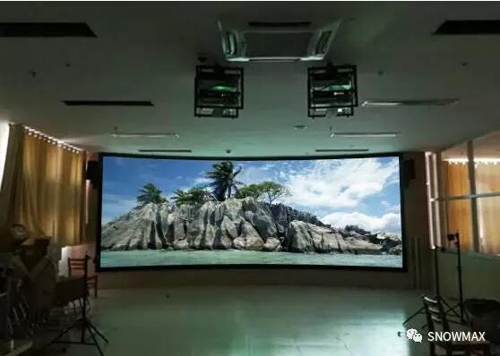 山東某高校在校圖書館內建立一個3D教學體驗實驗室,由于實驗室空間較大,為了達到最佳體驗效果,需要在弧形墻面上實現7*2.5米的3D投影效果,如此大的投影積,既要做到3D效果,又要做到多個畫面無縫拼接,而且教育教學不同于一般的電影院,對圖像的清晰度和分辨率要求都非常高,最終,SNOWHITE白雪利用4通道投影融合出完美的3D解決方案。