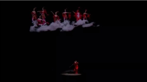 其實舞臺上只有一個人,背后的九名dancer都是通過全息顯示技術的視覺成像。