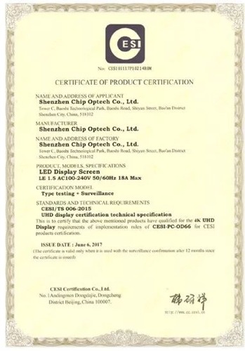 齊普光電在高清顯示方面持續進行研發投入,金錢豹小間距 產品在推出后已經得到了廣泛的演藝行業、系統集成行業的認可,并且取得了CESI超高清產品認證證書 ,以及“一種LED顯示屏的連接固定鎖 ”、“一種小間距前維護LED顯示屏屏間連桿結構 ”、“一種小間距前維護LED箱體及模組以及其拆裝方法 ”三項國家級發明專利,這是對齊普光電小間距核心技術的認可。