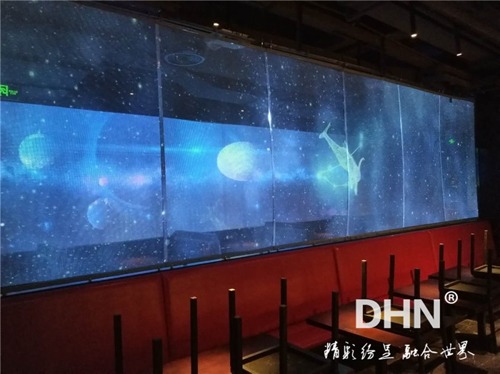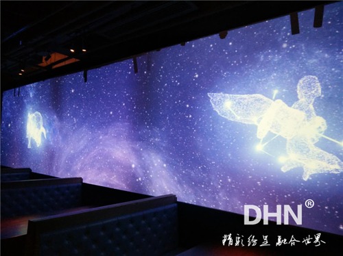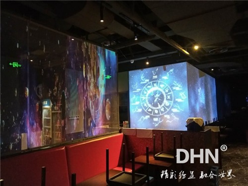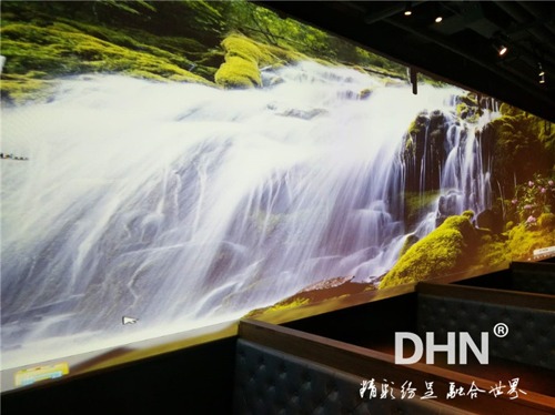 DHN助力胖哥倆餐廳,采用DISO中控系統,搭配16臺3200流明教育投影機,采用迪東軟件融合,實現掌上控制主機開、關,音量調節與片源播放等。通過環境打造,動態背景畫面,給正在用餐的顧客一種舒服與享受的美好氛圍。