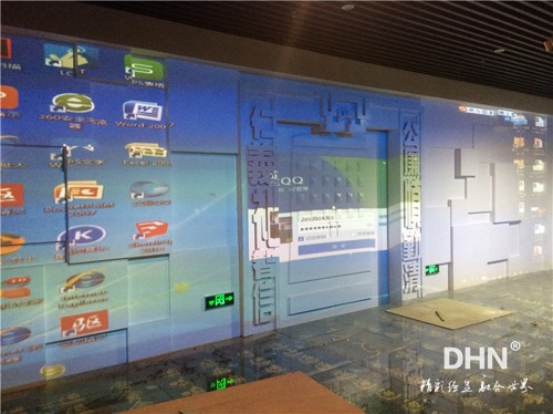 DHN助力西安國稅北大廳展廳,通過顯示介質,全方位展現西安國稅今后更便利、更高服務質量為納稅人服務。從整體方案設計到后期進場,皆是我司一站式服務。根據現場投影尺寸,長寬高分別為3.4m*3.4m*2.6m,要求每個畫面互不受影響的情況下,我司給出5臺6000流明工程投影機,搭配0.8短焦鏡頭,結合迪東DW705-3與DK517硬件融合器整體沉浸方案,營造立體、全方位、包圍的沉浸氛圍。其次,為滿足客戶后期使用更加便利、易操作,采用DISO中控系統,分別控制5臺投影機開關、播放主機開關、片源播放、暫停與音量的加減等,巧妙的解決了客戶的后顧之憂。轉而人工講解臺,我司給出4000流明超短焦激光投影機DHN-HDX680,搭配120寸電動幕布作為單項顯示,將納稅人直觀視界與服務解說實現完美結合。