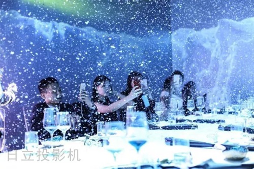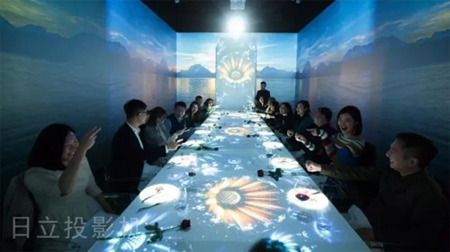 上海女王3D餐廳受到廣泛關注,試營業期間需要預約排位近半個月,如此火爆的原因,除了美食外,日立工程投影機功不可沒。