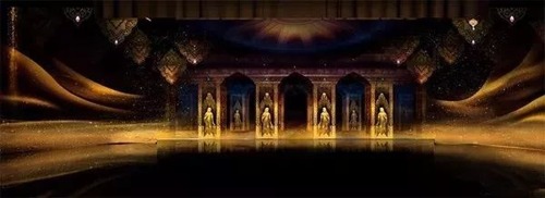 在如海市蜃樓般的印度沙漠中,法師揮動空氣中的魔法金沙,金沙組成印度美女在飛毯上跳起了肚皮舞,最后,法師一揮手,飛毯沖屏,朝觀眾席上方飛去。
