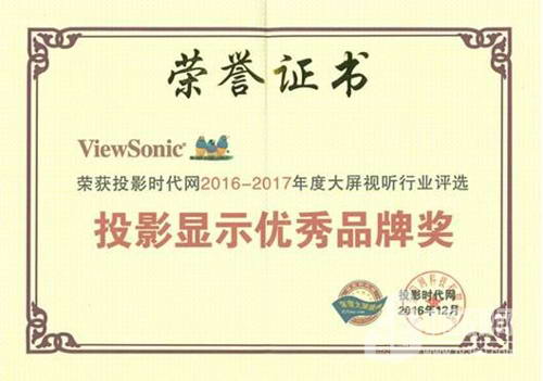 投 影 時 代 網(wǎng)2016-2017年度大屏視聽行業(yè)評選投影顯示優(yōu)秀品牌獎