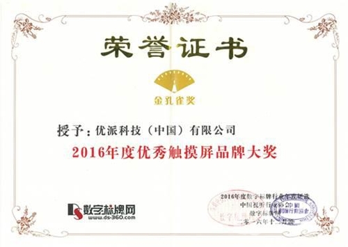 數(shù)字標牌網(wǎng)2016年度優(yōu)秀觸摸屏品牌大獎