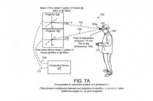 根據名稱為“使用多個MEMS投影器追蹤頭戴式顯示器或控制器的光電傳感器的位置的系統和方法”的專利描述,該系統的工作原理大致是,多個MEMS投影器產生不同的激光光束,然后多個MEMS反射鏡調制不同光束在不同模式下投射,光傳感器檢測出光束之后,系統計算不同光束到達光傳感器所需的時間,從而確定光傳感器的所在位置。其中系統中MEMS反射鏡是基于利薩如掃描(Lissajous pattern)和光柵掃描( raster scan pattern)實現的。