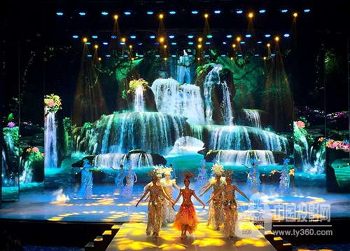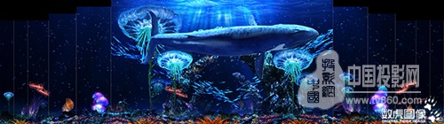演出設(shè)置了“序幕”、“漁水歡歌”、“海洋之戀”、“生命序曲”四個(gè)章節(jié),視覺效果呈現(xiàn)主要以LED視頻舞美和紗幕投影為主,兩者配合形成雙層視覺,增加了舞臺縱深感,使場景更立體逼真。