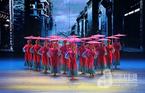 不止有海洋場景,演出還著重表現(xiàn)嶺南風(fēng)情,因此在舞美影像設(shè)計(jì)中融入了嶺南小巷、嶺南老街、石板小路等元素,配合撐著油紙傘的曼妙少女的舞姿,別有一番風(fēng)味。