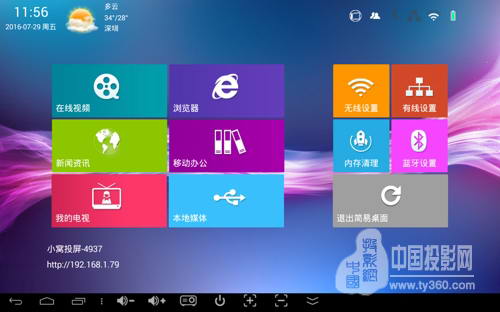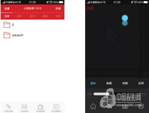 (1)使用無線投屏中的“小窩投屏”客戶端,手機下載“小窩投屏”客戶端,打開它,成功連接相應的投影機后,手機可以變身智能遙控器,還可以一鍵同屏,將手機上的圖片、視頻、音樂、文檔資源一鍵上傳至投影屏幕上。