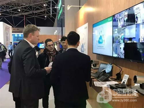 荷蘭ISE展會上,億聯視頻會議服務器受到關注,工作人員正在講解