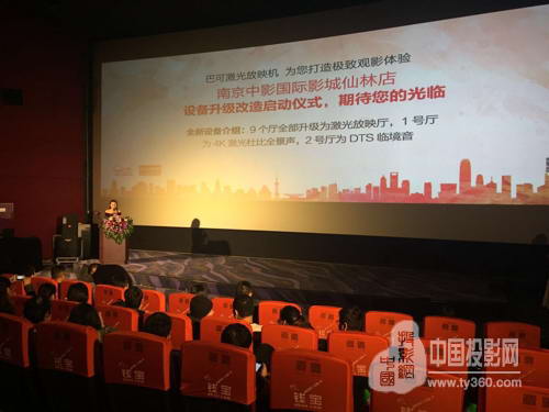 2017年1月16日,南京中影國際影城仙林金鷹店設備升級啟用儀式隆重舉行。通過攜手中影巴可等業界領先廠商,該店順利完成了設備升級改造,實現了從氙燈放映到激光放映的華麗升級,成為中影集團旗下又一成功搶占發展先機、走在行業前列的全激光影城!