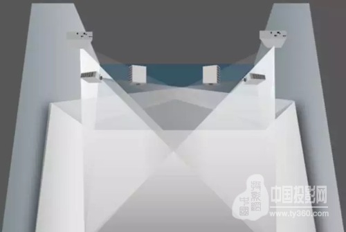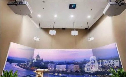 在3D沙盤的展廳內(nèi)側(cè)還有一間“沉浸式3D影音室”,是展廳精心打造的3D體驗廳,安裝了6臺愛普生高端工程投影機,分成3組以不同的投射角度吊裝在屋頂上,利用投影機“內(nèi)置幾何校正功能”和“多屏幕拼接系統(tǒng)”將投影的U型畫面融合成一個整體。